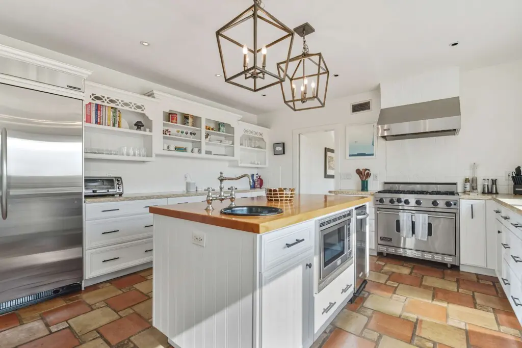 At the heart of the home is a fully equipped kitchen with stainless steel appliances, ample counter space, a drip coffee maker, and a dedicated dining area—ideal for everything from casual mornings to intimate dinners. A dedicated workspace and high-speed Wi-Fi support both productivity and leisure.