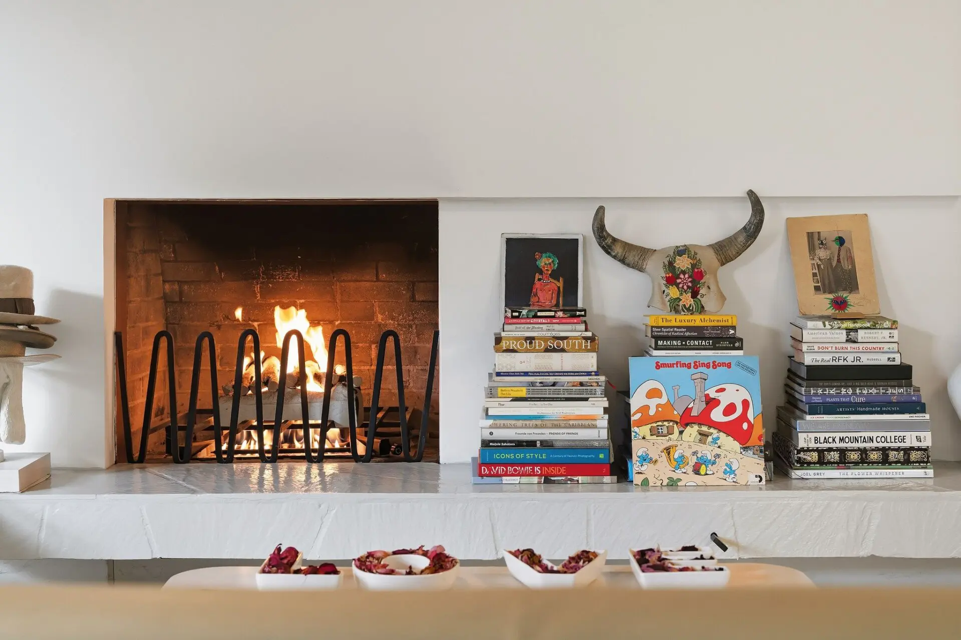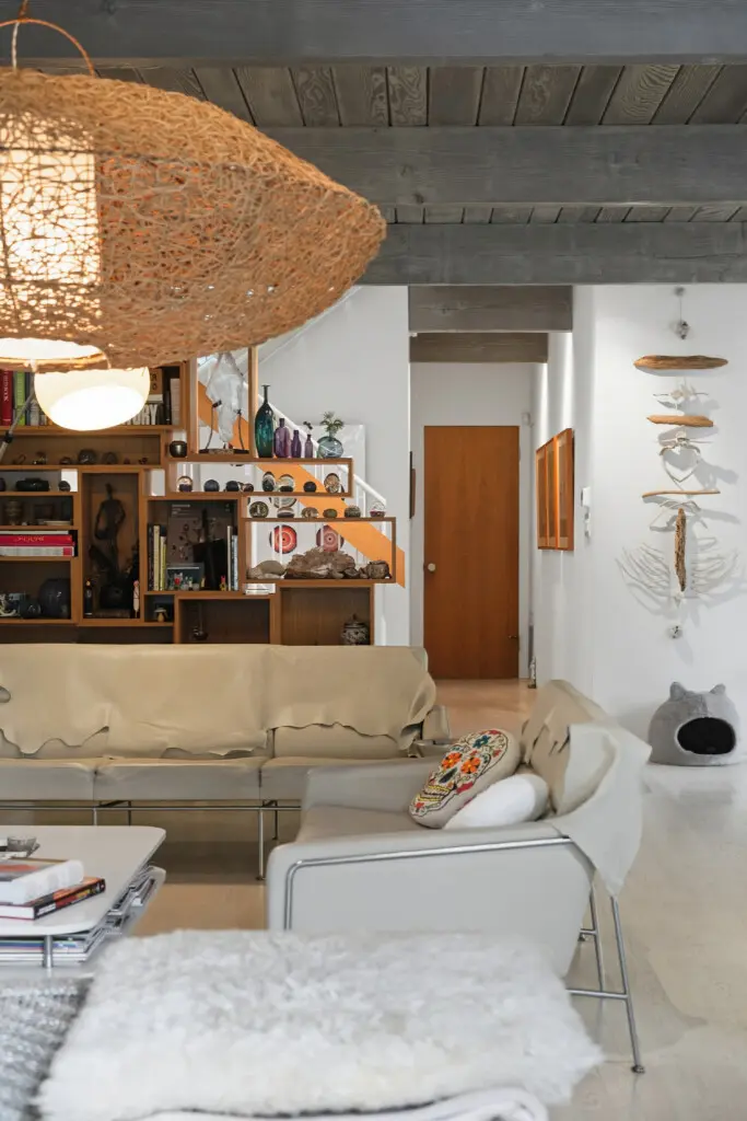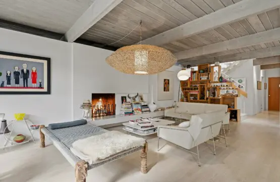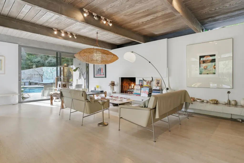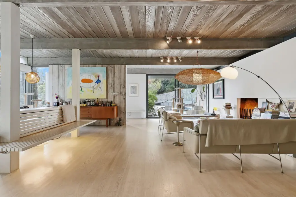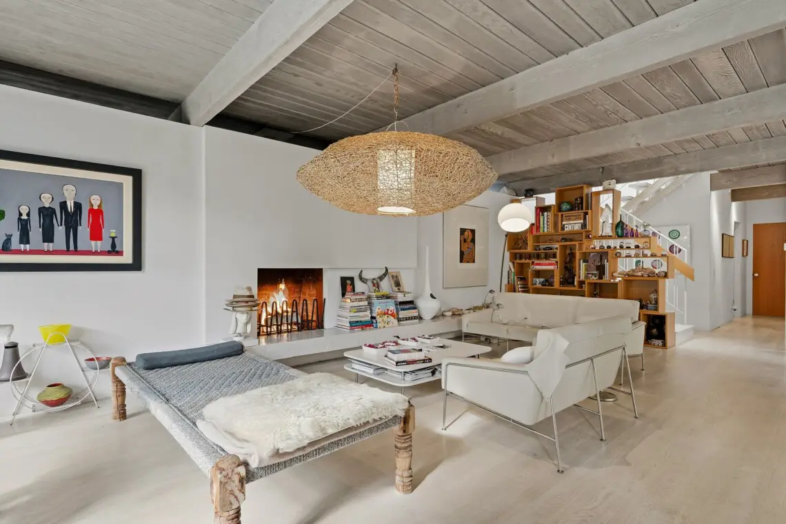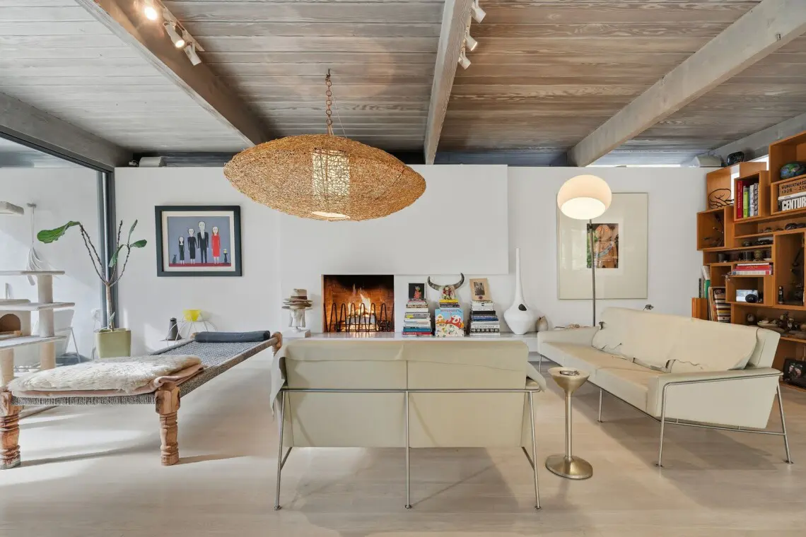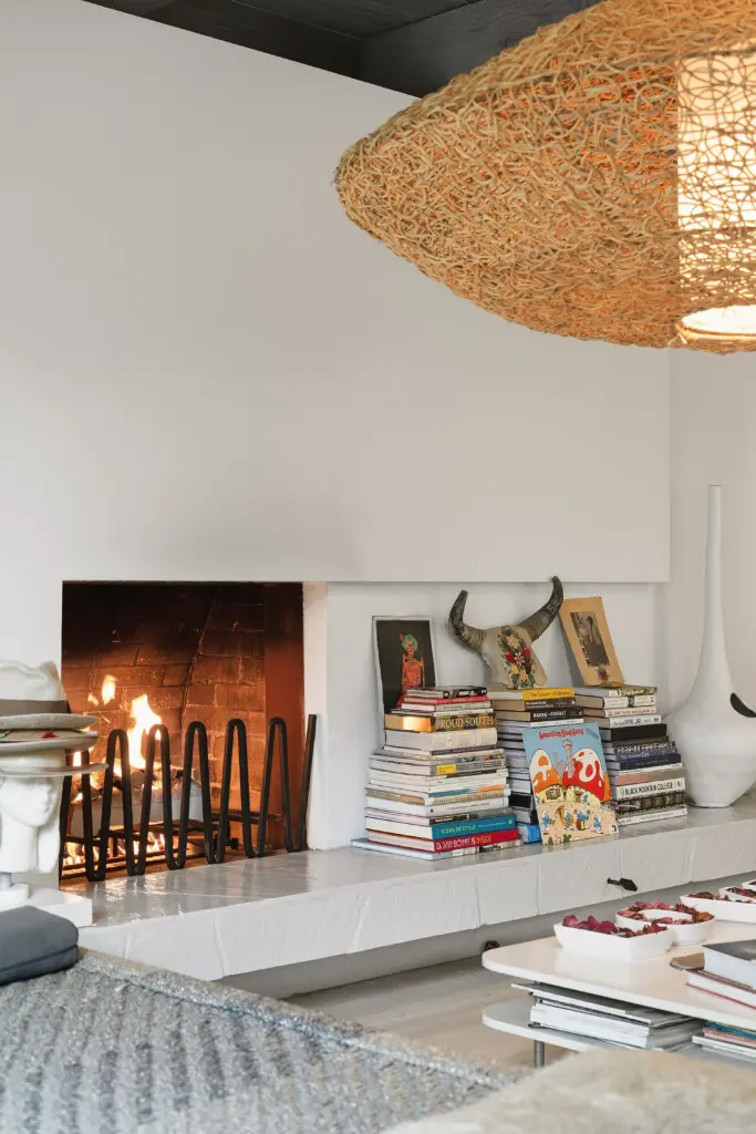 Inside, curated interiors feature sunlit living spaces, clean architectural lines, neutral tones, and layered textures that create a warm, welcoming atmosphere. Thoughtful furnishings, modern lighting, and an indoor fireplace set the tone for cozy, comfortable evenings.