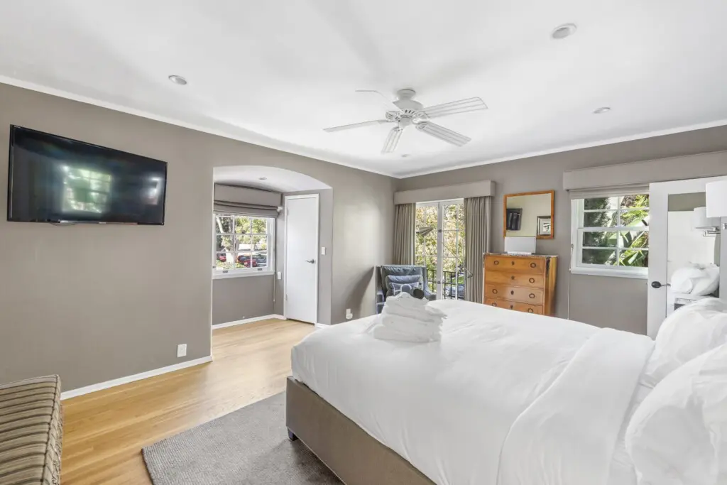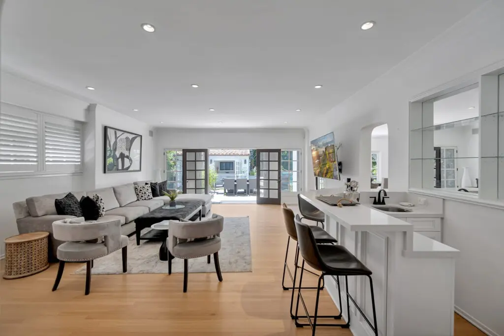Welcome to Hollywood Sunset Villa – an exquisite 3-bedroom, 2.5-bathroom home + spacious office + detached 1 Bedroom, 1 Bathroom casita/poolhouse, nestled in a quiet historical neighborhood right off Sunset Boulevard. Perfect location from which to walk to dozens of restaurants, bars and retail. This captivating home offers a perfect blend of luxury, comfort, and entertainment, ensuring an unforgettable stay for you and your guests.