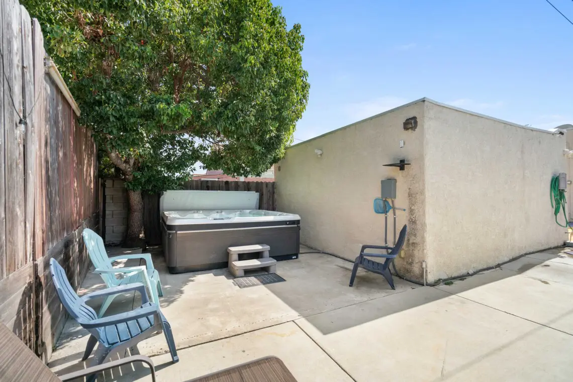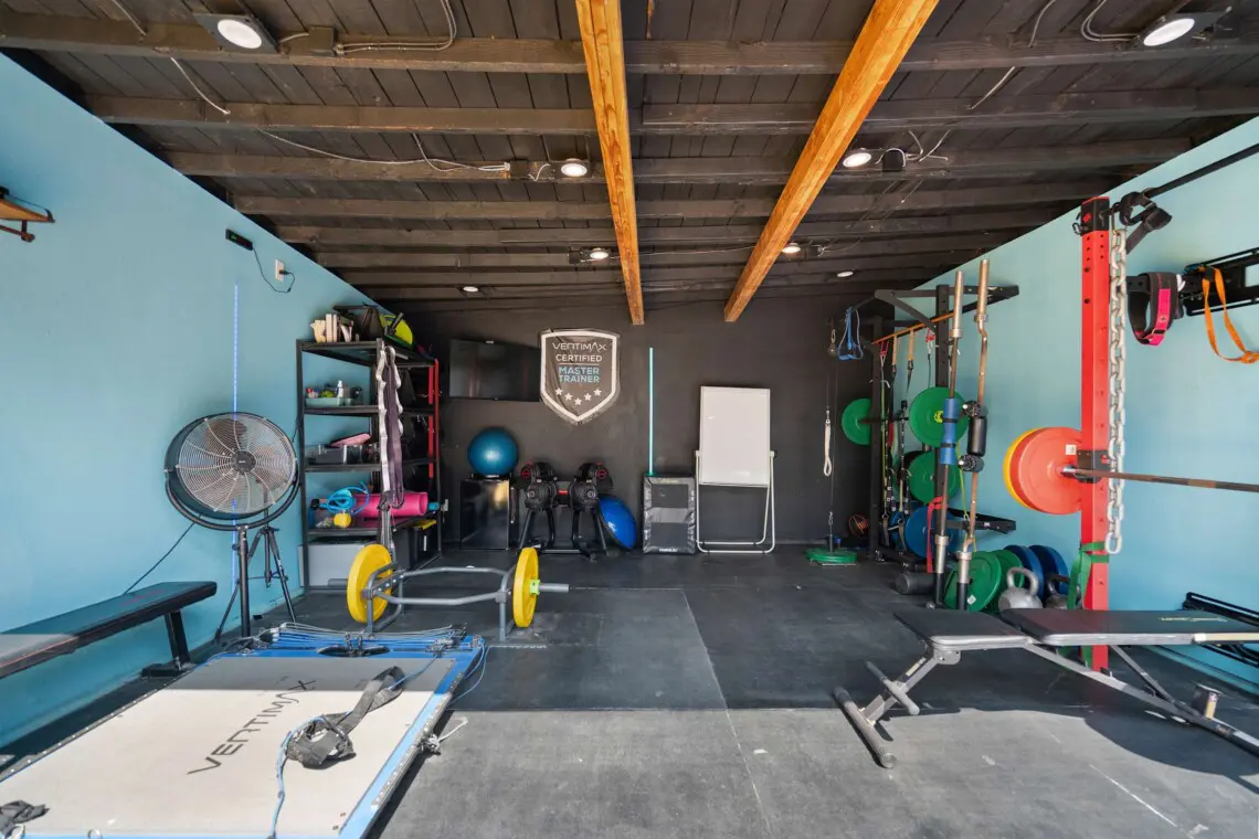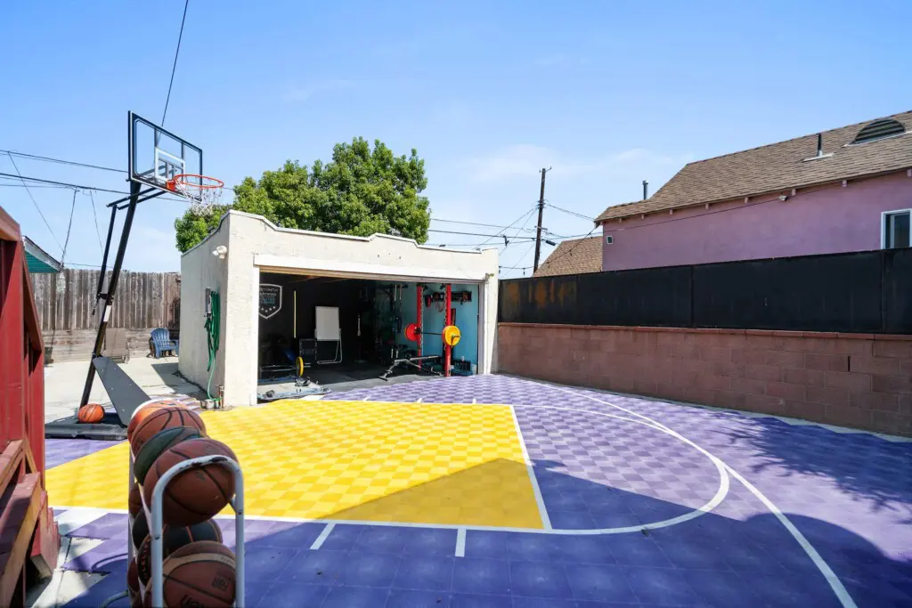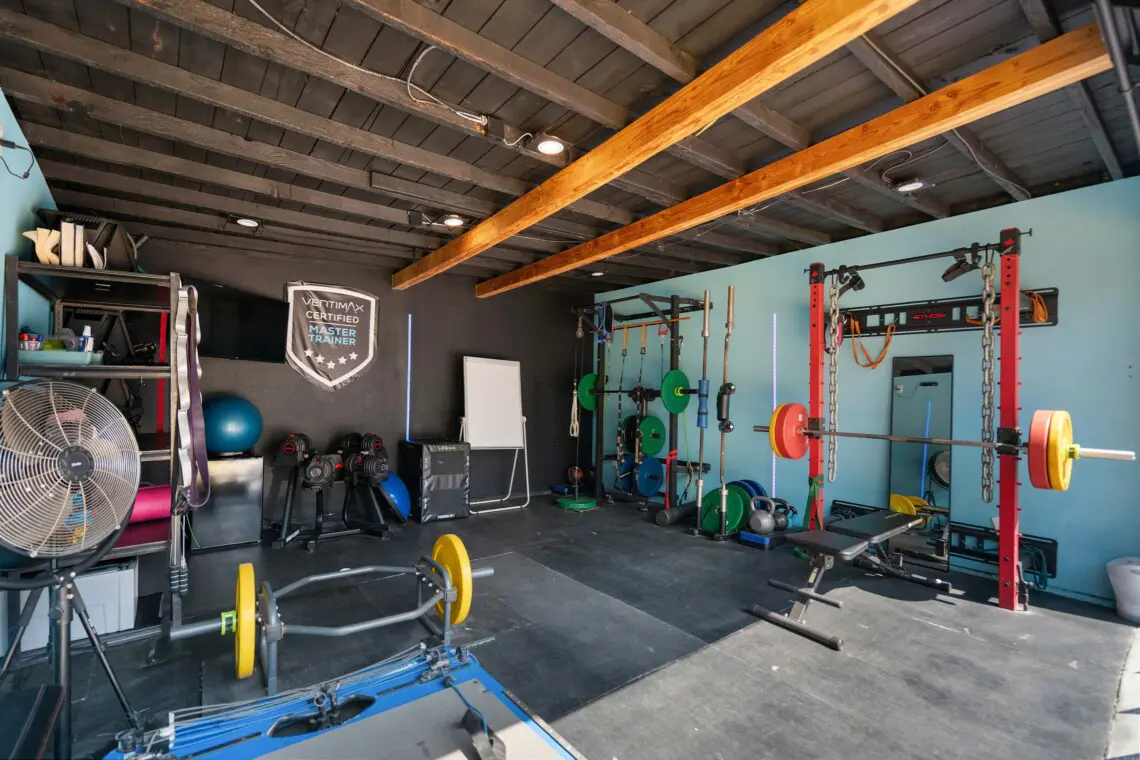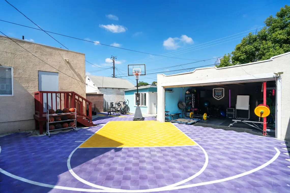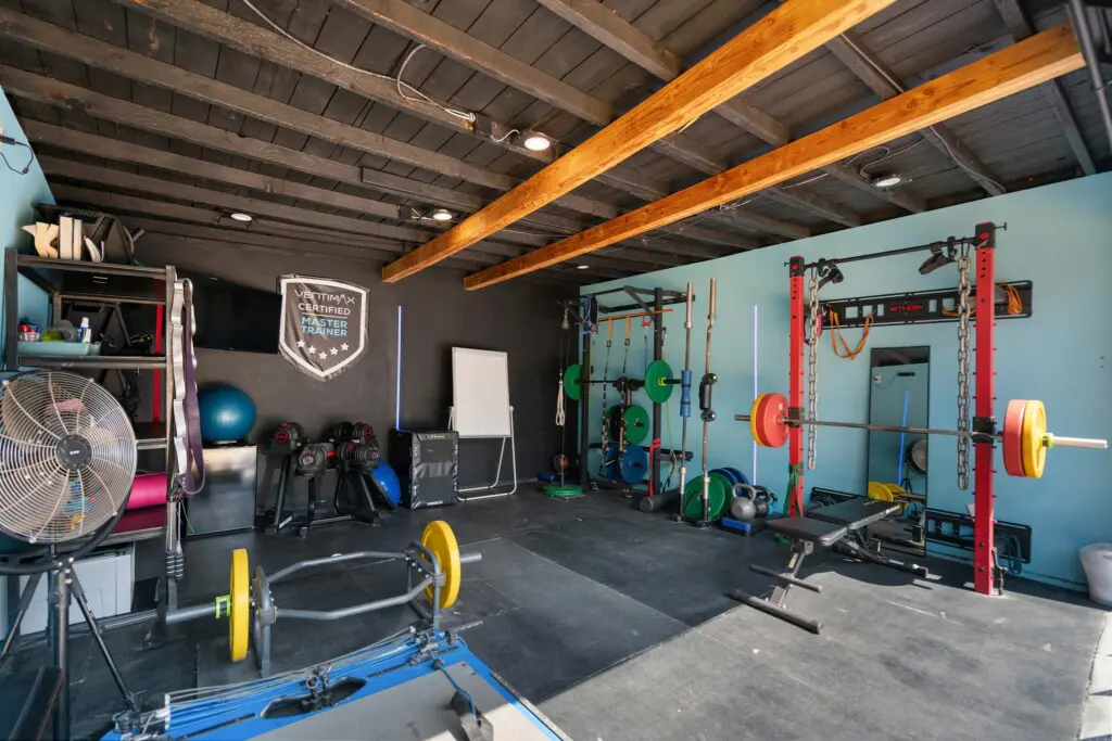 Step outside and enjoy true Southern California indoor-outdoor living. The expansive patio invites you to unwind in the private hot tub, host casual gatherings, or relax under the open sky. Stay active with a private basketball court and an on-site Olympic-style weightlifting gym—an exceptional feature that sets this home apart and makes it ideal for fitness-focused travelers.
